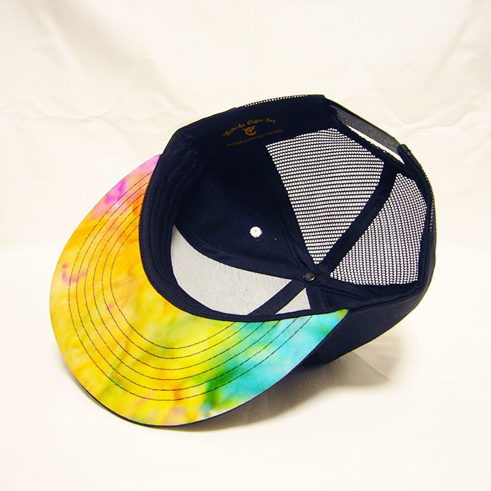 ツバ裏にはハンドメイドならではのアブストラクトな生地を使用。