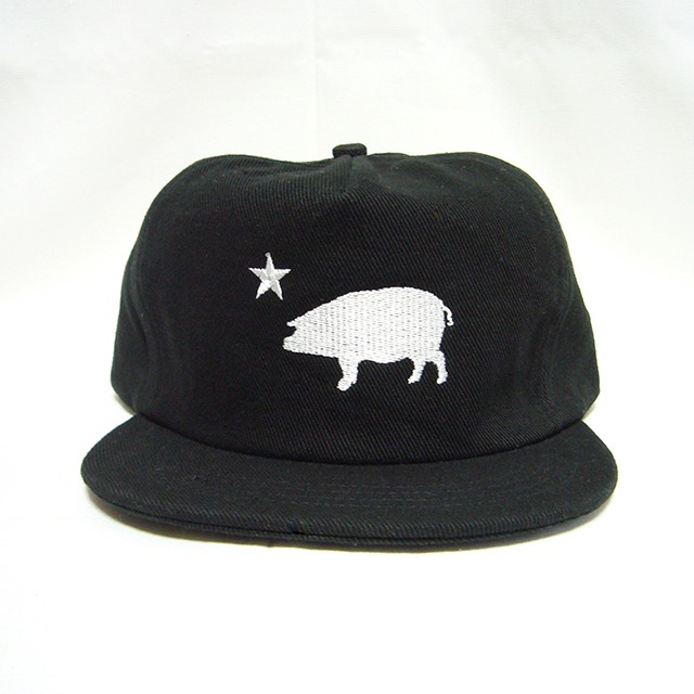 "BABIFORNIA" YOSHIDA CAPS フロントには"BABI" (PIG) の刺繍が入った、CALIFORNIAならぬBABIFORNIA。 インドネシアでは良くBABIを頂きます。生きていることに感謝の気持ちをオマージュとした、つばが通常より短いスタイリッシュなショートブリムモデルです。